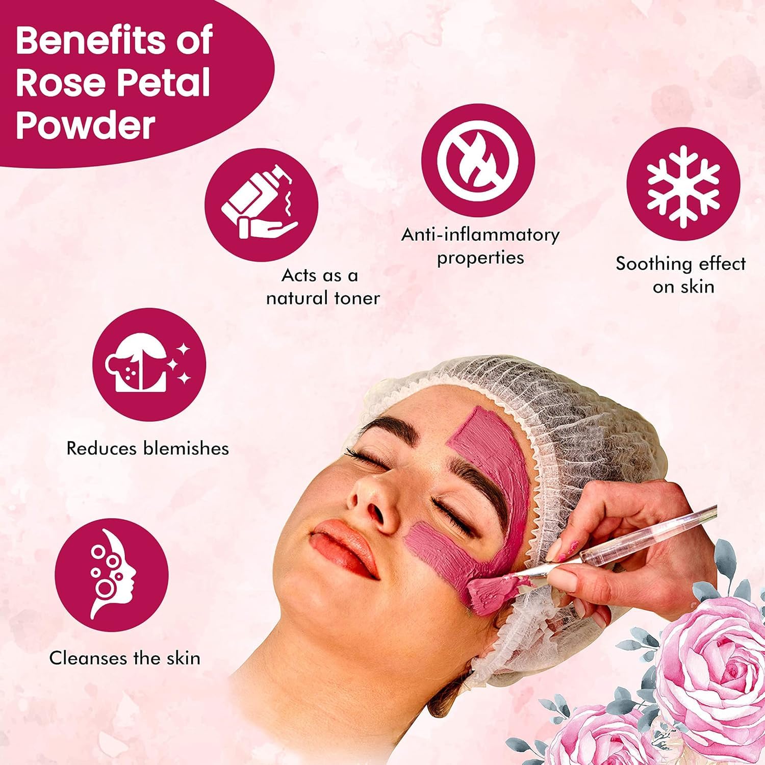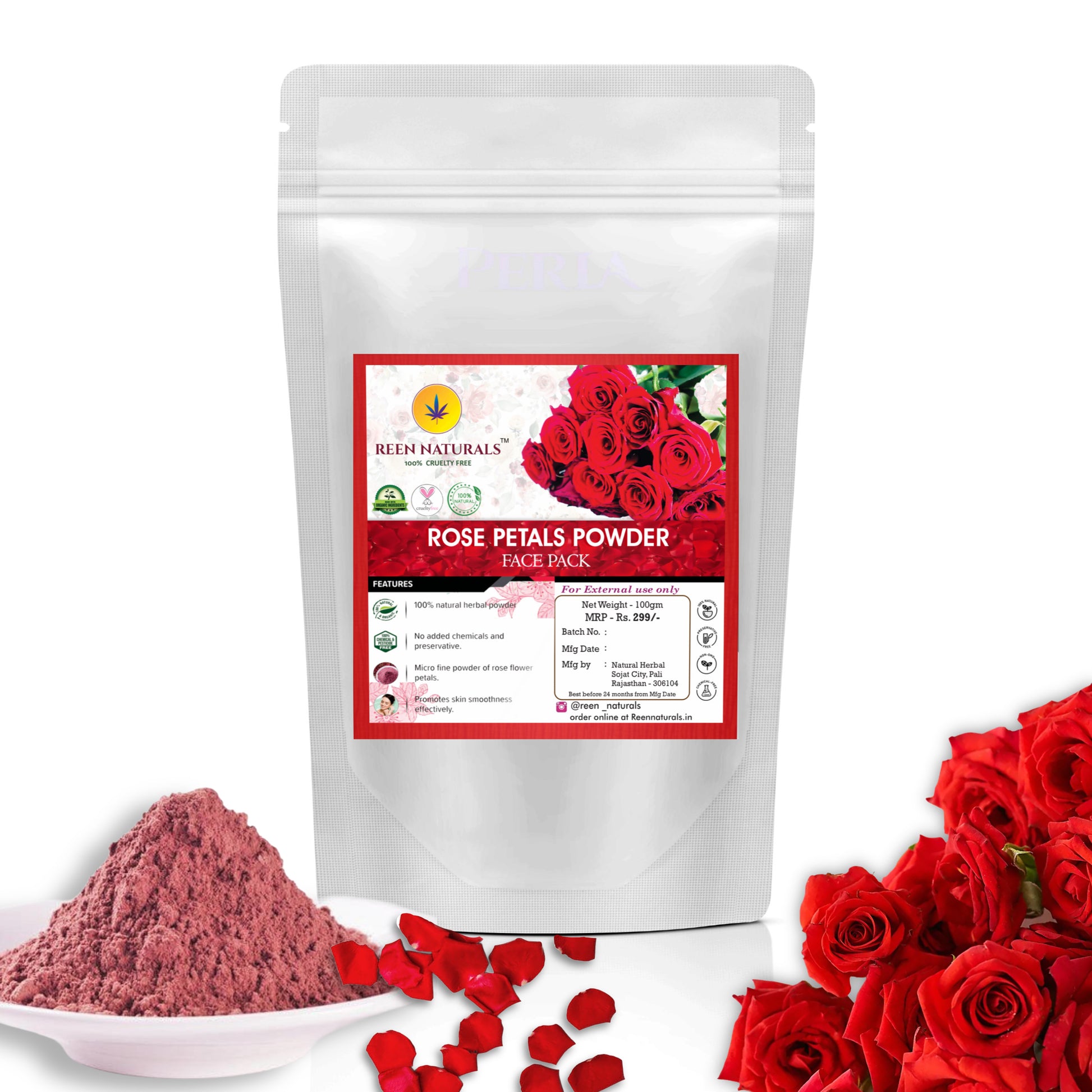 Reen Naturals Rose Petal Powder is 100% pure and organic, made from dried rose petals. Rich in antioxidants and vitamins, it naturally soothes, hydrates, and brightens your skin. Ideal for all skin types, it helps reduce acne, dark spots, and signs of aging while tightening pores and adding a radiant glow.
